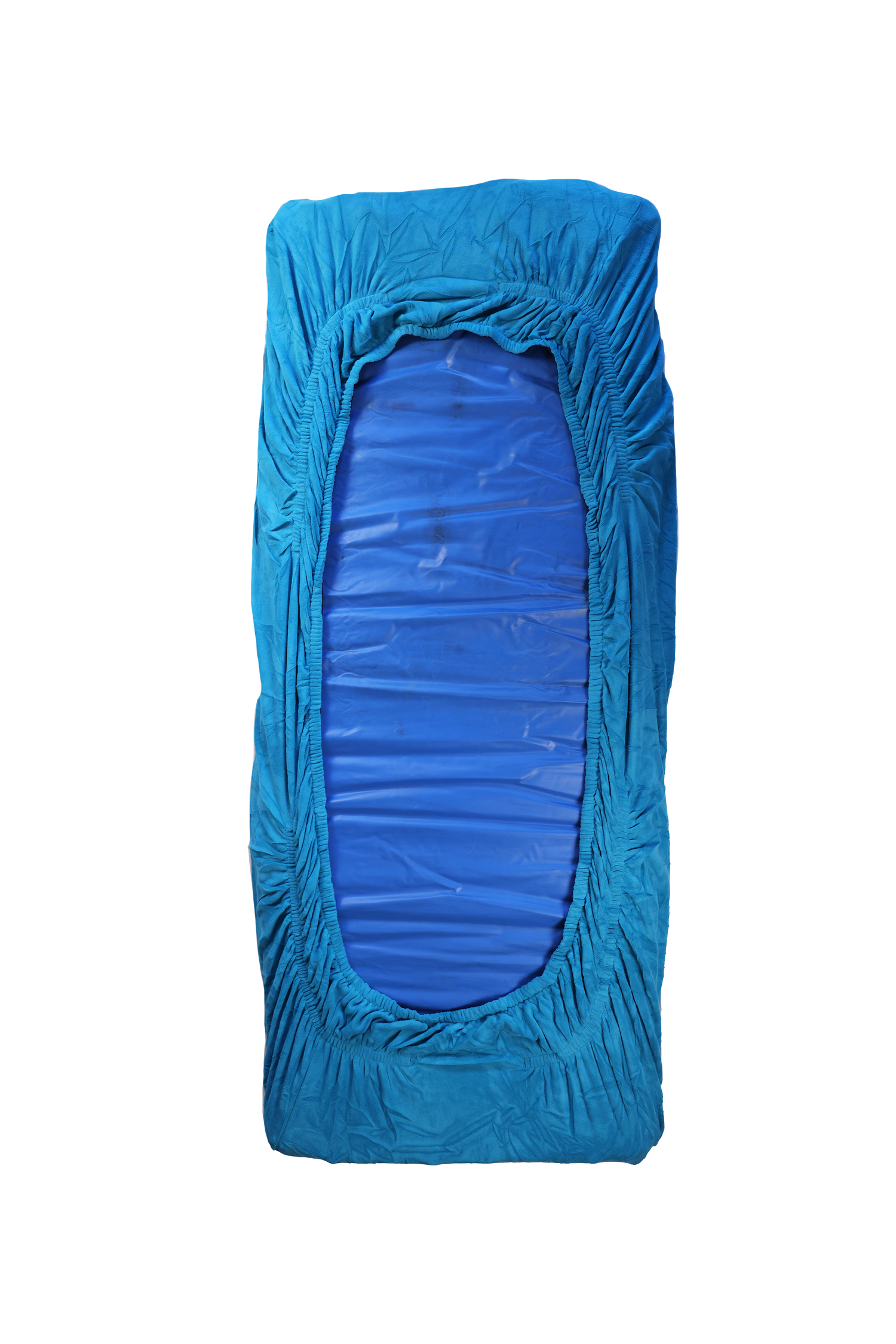 This Cuddle Buddy is made of Teal fleece fabric. Flip it over for warmer nights and enjoy Navy Blue jersey knit cotton surface.